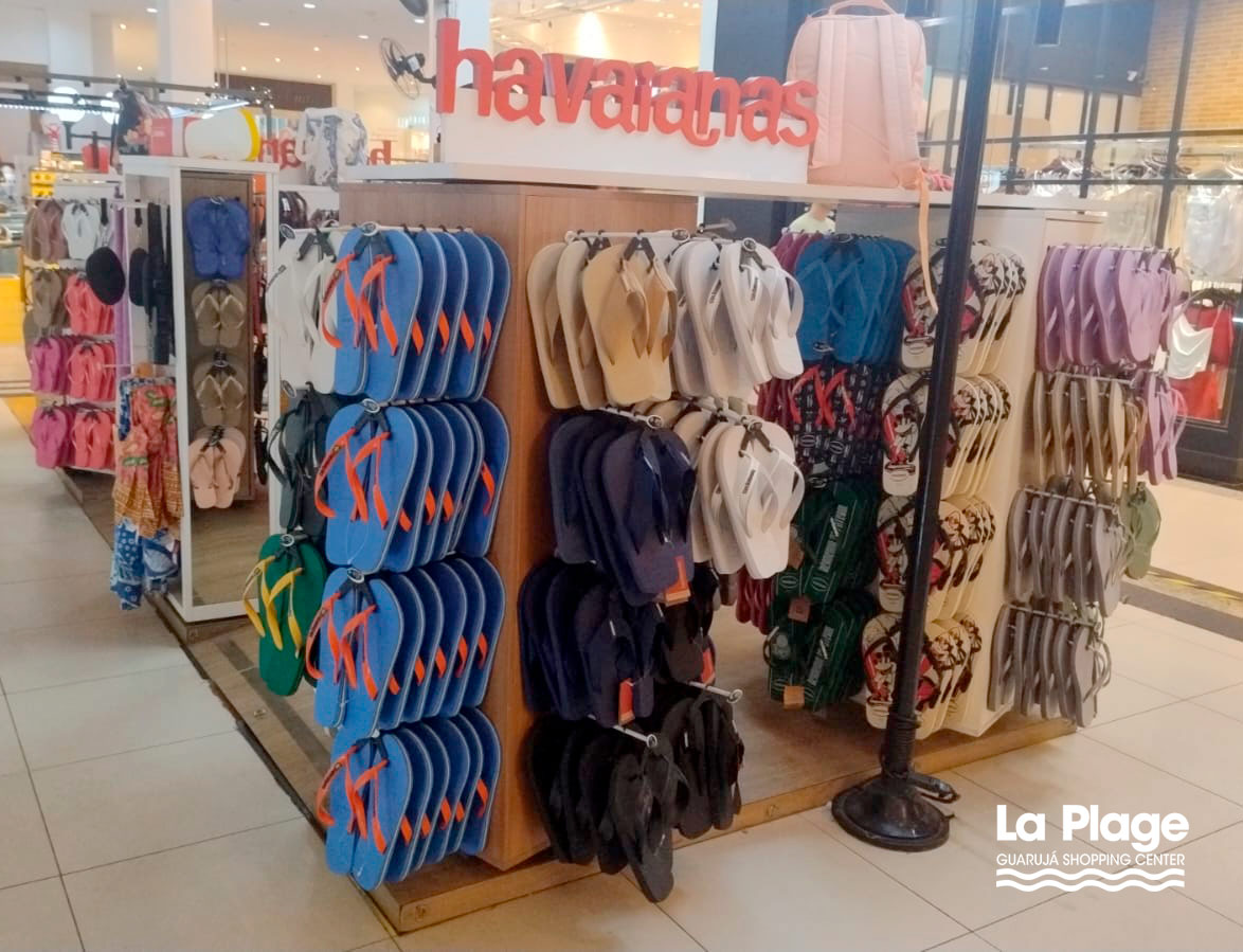 Nada combina mais com praia do que Havaianas! Então, não podia faltar no Shopping La Plage um quiosque inteiro dedicado às legítimas.